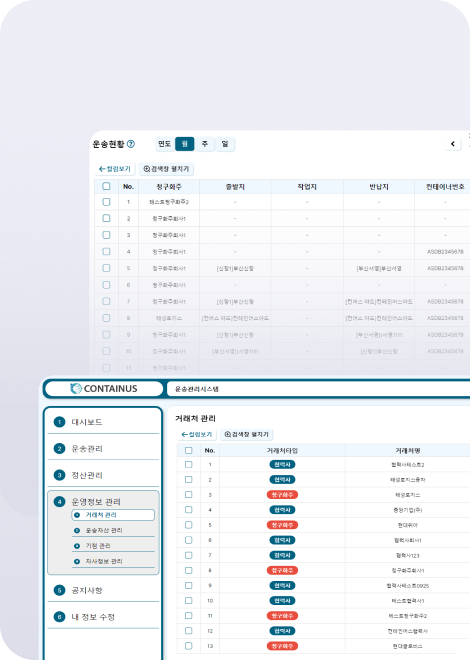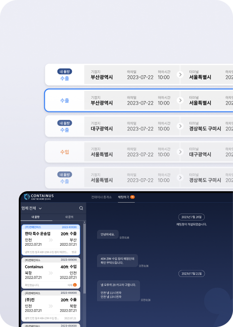 AI, 클라우드, 블록체인 등 IT 기술 기반의 플랫폼으로 컨테이너 통합운송관리와 모니터링 업무를 지원. 컨테인어스의 운송사 업무관리솔루...